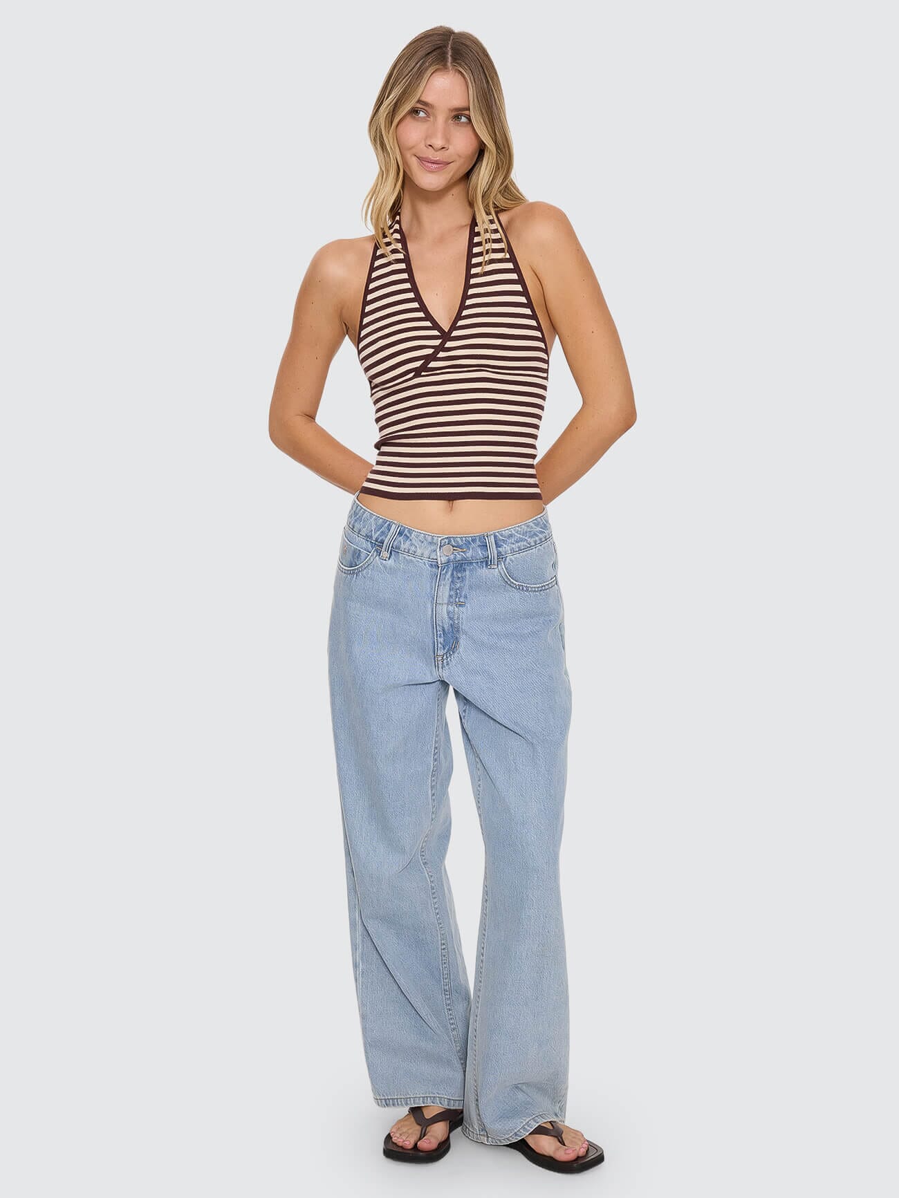 Dayna Knit Halter Top - Butter Cream Stripe