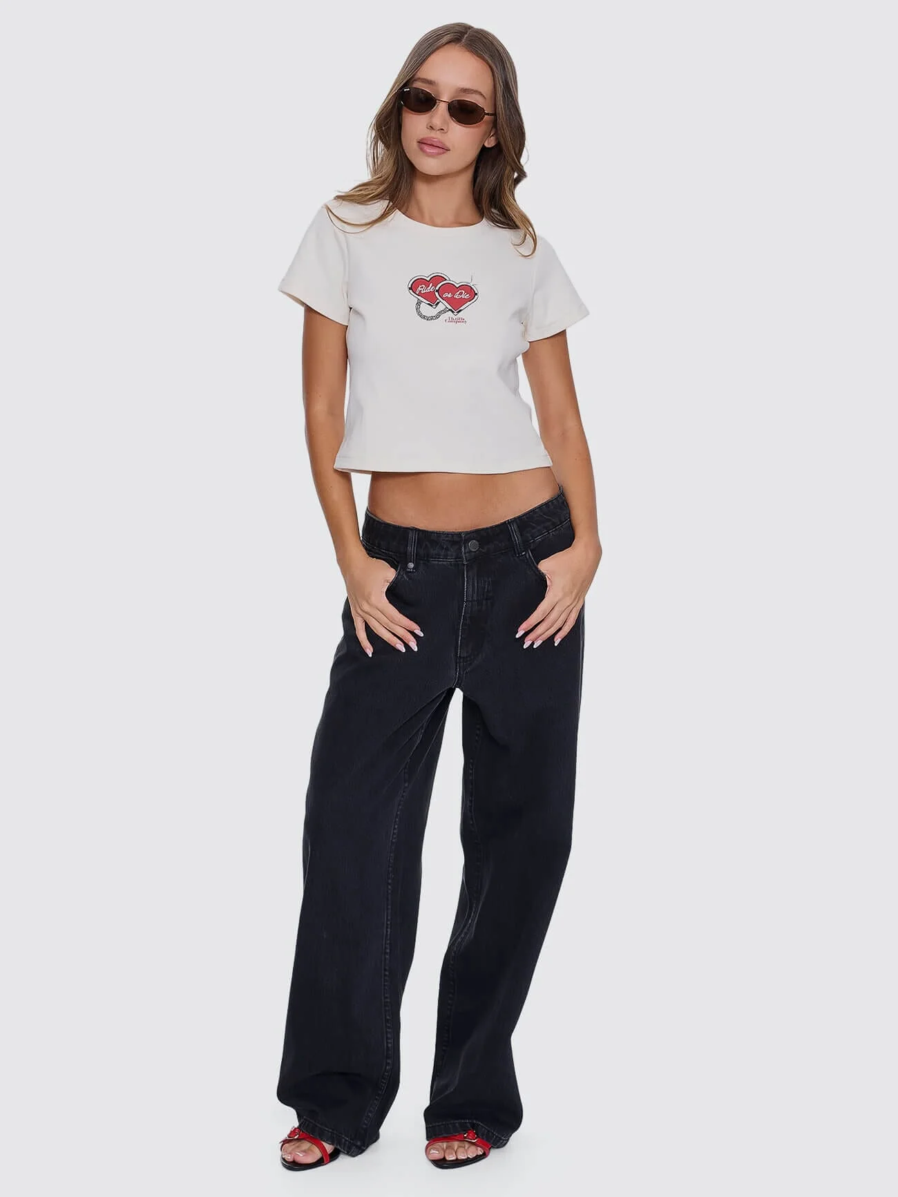 Cropped, relaxed, crew neck tee that sits above the waist.