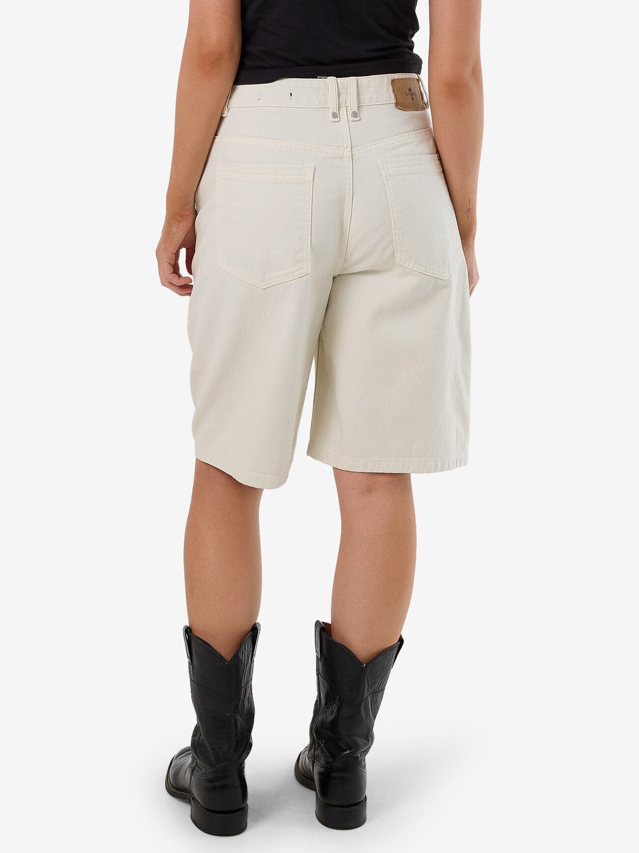 A fusion of Japanese workwear inspiration and edgy street style, the Ronnie Short in Bone boasts an exaggerated silhouette for comfort that's hard to beat. The relaxed mid-rise waist sits comfortably around the waist while the ultra-wide hems ensure maximum mobility and breathability. Made with organic cotton denim, this women's short is made for everyday wearability.