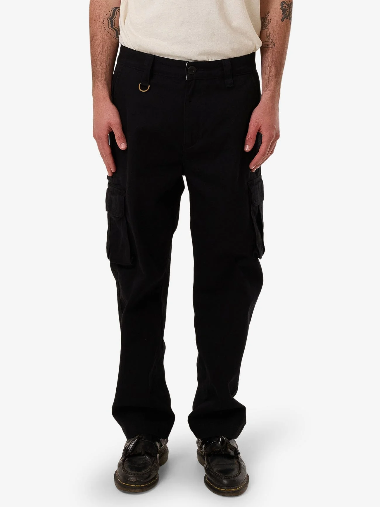 Redefine casual style with the Slacker Union Cargo Pant in Black. Designed for practicality and durability, these men's pants feature spacious cargo pockets and a sturdy cotton twill fabric that stands up to daily wear. The relaxed, straight-leg fit and versatile black shade make them easy to style, while the added D-ring detail adds a touch of utility-inspired edge.